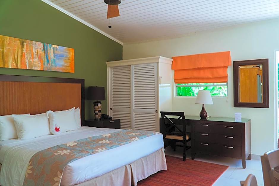 This room category offers 1 King-size bed and Garden Views. It offers contemporary style décor, air conditioning, ceiling fan, 32" LED flat-screen cable TV, iron/ ironing board, hair dryer and electronic safe. The fully equipped kitchenette includes fridge, stove, toaster and coffee maker, while the private bathroom comes with bathtub.